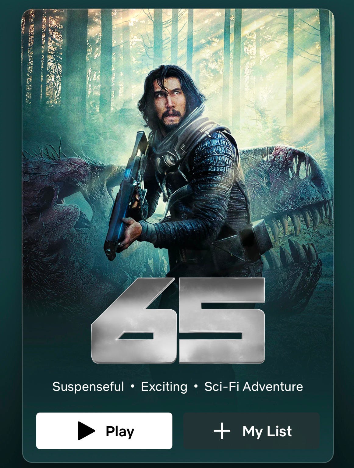 Even with its issues, 65 was entertaining. Adam Driver delivered as always, and I’ll support him in whatever he does.